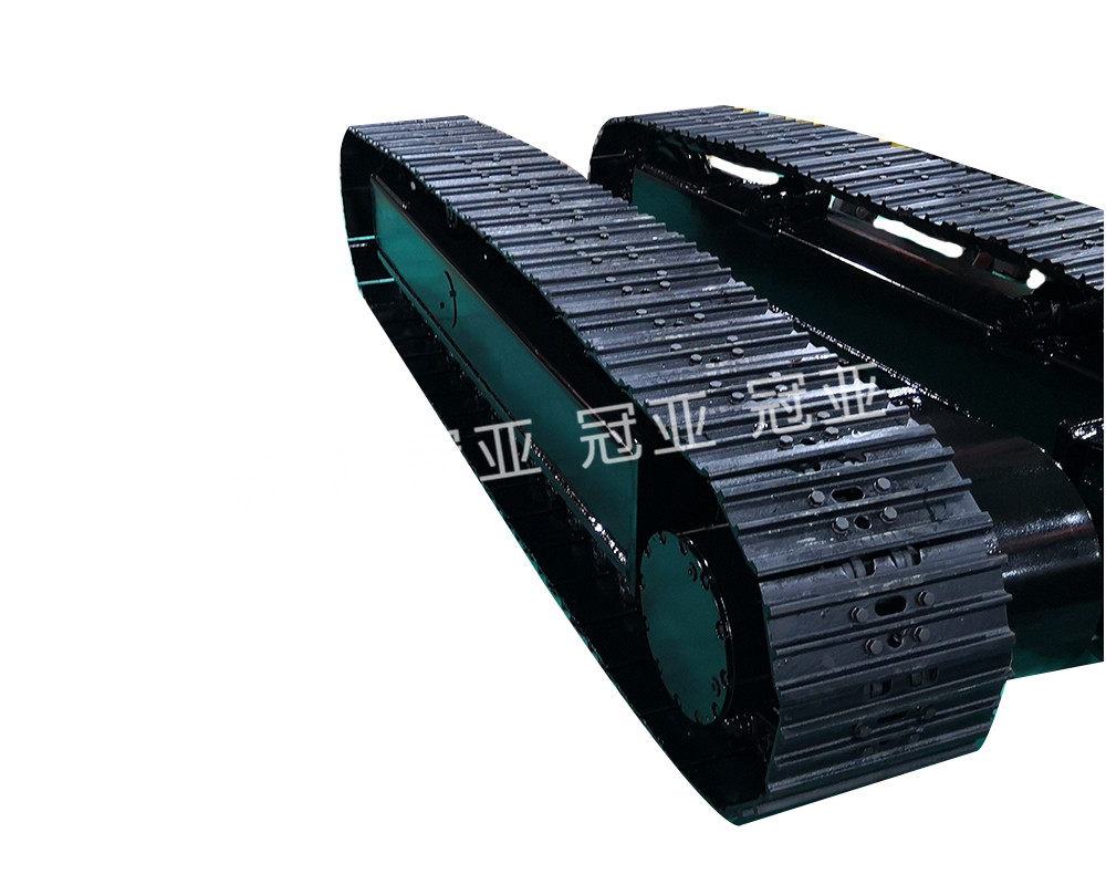 橡胶履带运输车,重量轻,寿命周期费用低,能降低车辆行走机构的噪音,减少车体振动,极大地降低油耗,在城市道路上行走不伤路面。